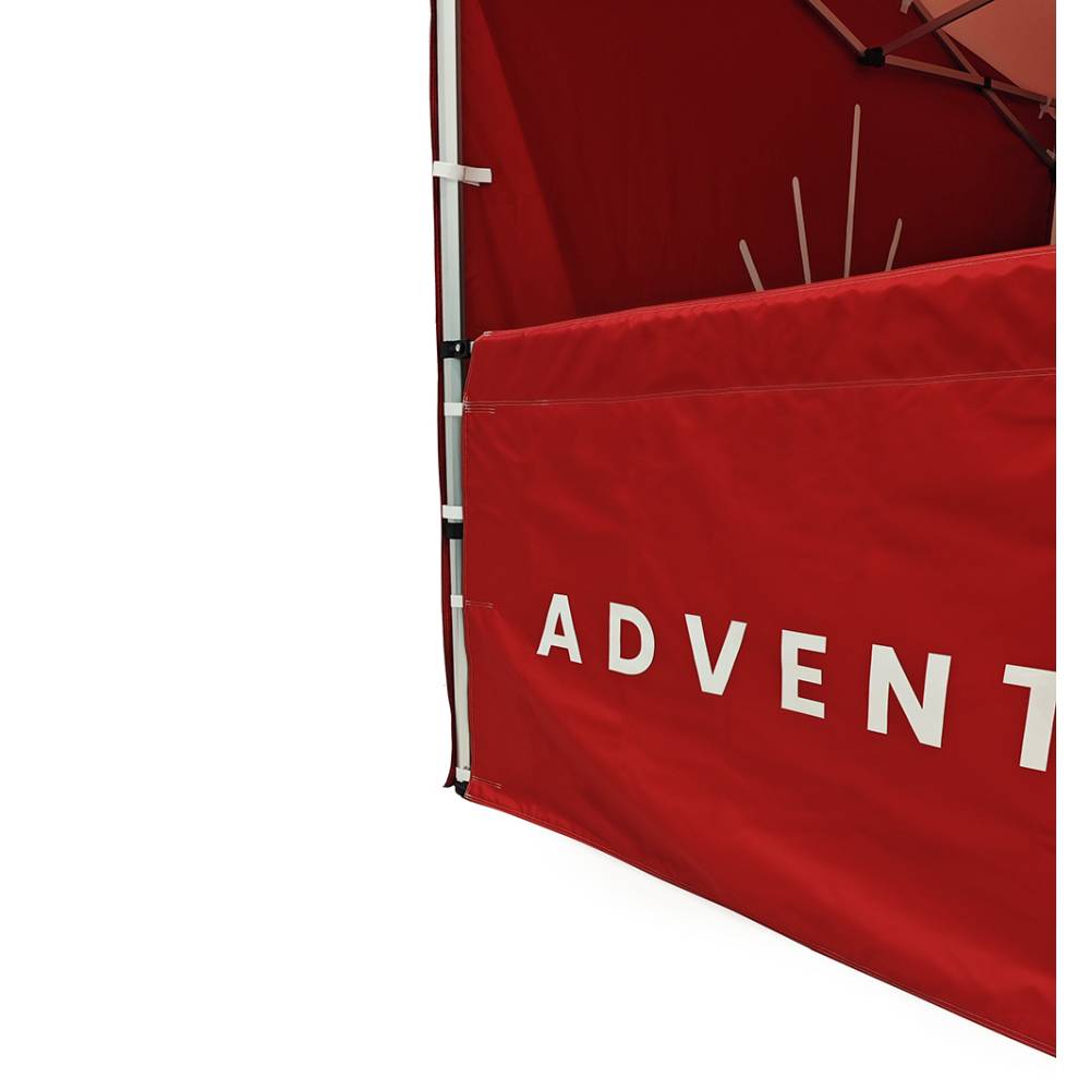 Promuévete más con el Media Pared Lateral con Impresión una o doble cara. ¿Necesita una nueva gráfica para otro evento o promoción o quiere cubrir sólo la mitad de su Carpa Aluminio? El Media Pared Lateral con Impresión es su solución. Un gráfico duradero con correas de velcro para asegurar la impresión a las patas de la Carpa. Elija entre el material de tejido de poliéster económico o el tejido de poliéster con certificación B1. Muestre su logotipo en un lado de la Carpa o consiga una mayor exposición y elija una impresión de media pared de doble cara. Muestre su logotipo en el interior y el exterior de la Carpa con la media pared de doble cara.