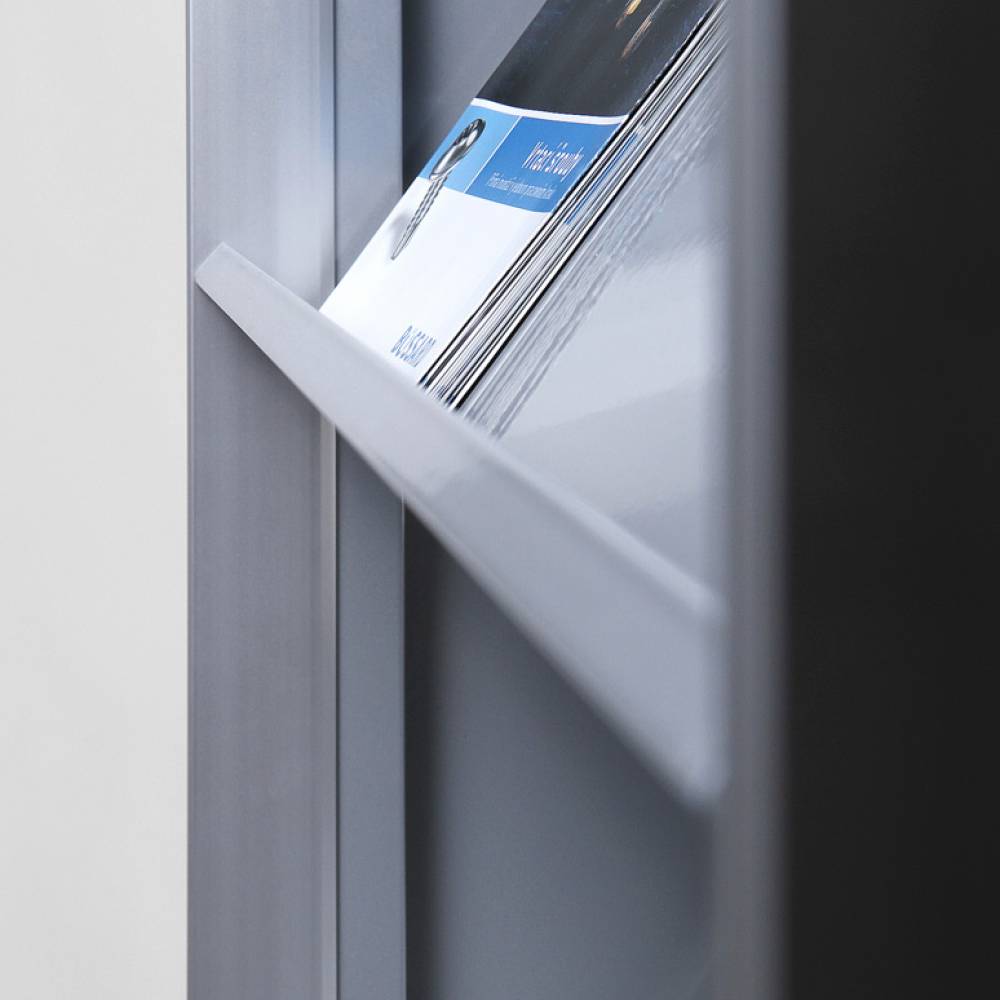 - Gran capacidad: 3 anchos diferentes de 5 estantes de metal angulados para 10, 15 o 20 folletos de retrato A4