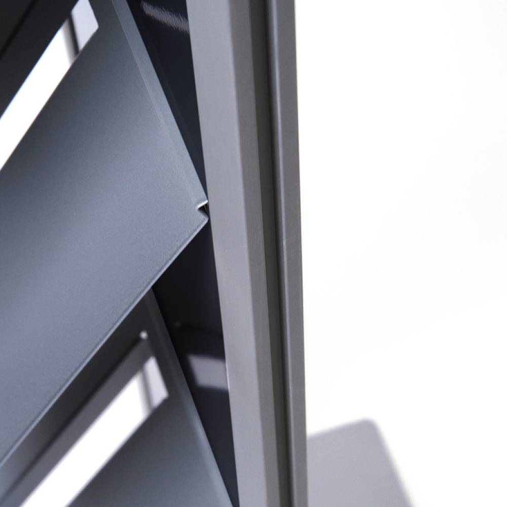 - Modular: los módulos disponibles por separado permiten personalizar este tótem a sus necesidades con dispensadores de folletos de tamaño A4 o 1/3 de A4 y posibilidad para colocar hasta cuatro dispensadores por cara.