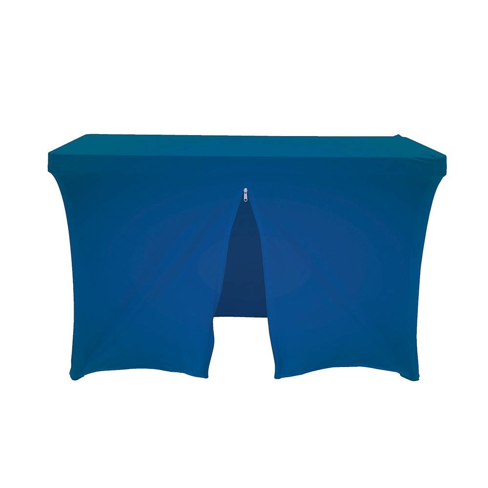 Guarde sus folletos, bolsos o objetos a distribuir debajo de la mesa y cierre el espacio con una cremallera en la parte posterior. Fácil acceso a su espacio de almacenamiento subiendo la cremallera y un look profesional y ajustado. Perfecto para usar en ferias y eventos.