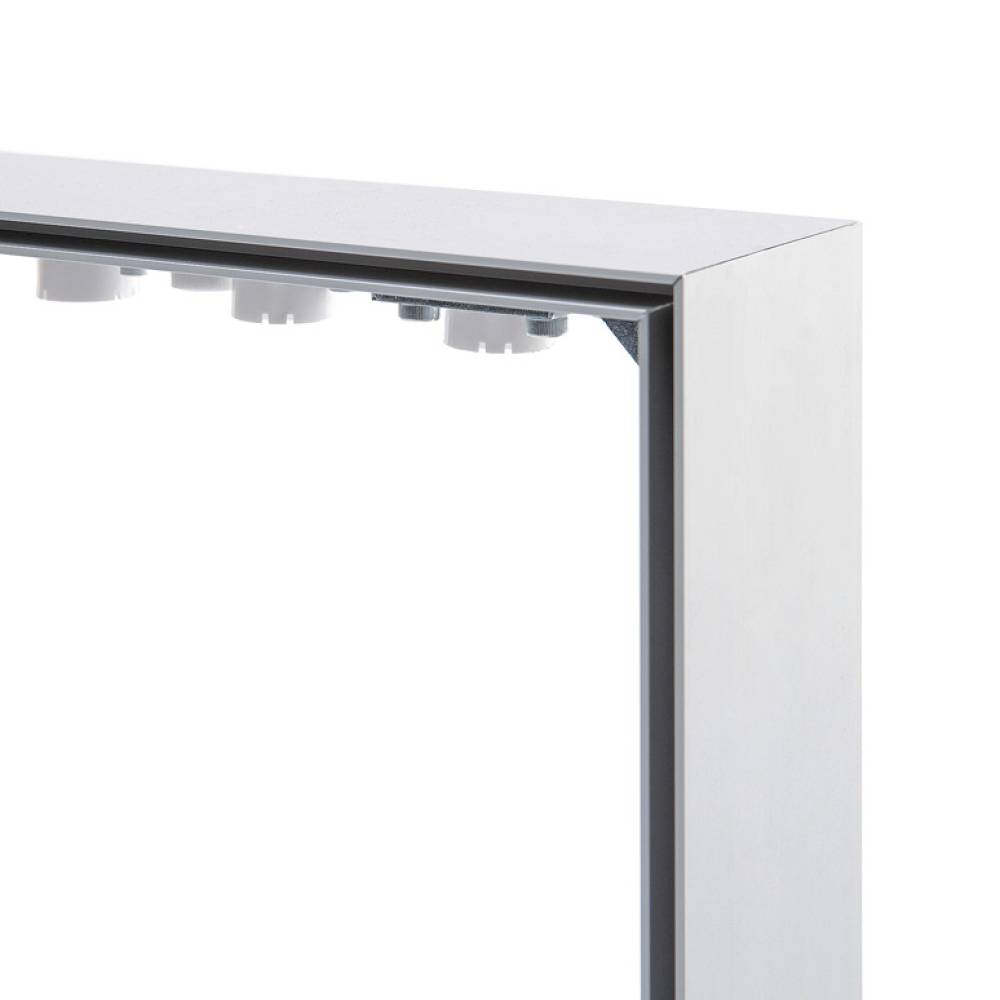 El marco se instala fácilmente en la pared mediante soportes de acero incluidos y ofrece una iluminación brillante de color luz diurna (5000 K) para un impacto visual óptimo. Además, es totalmente personalizable, disponible en cualquier tamaño y en colores RAL bajo pedido, adaptándose a cada proyecto.