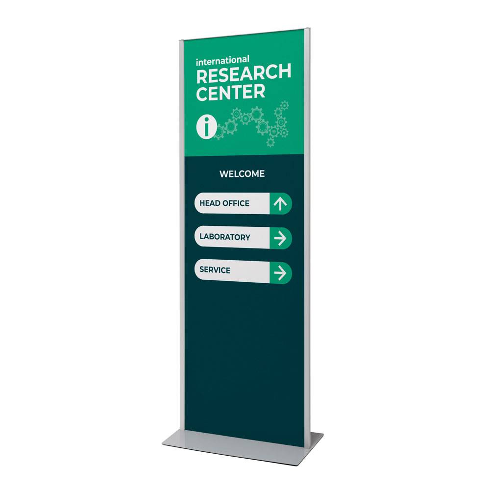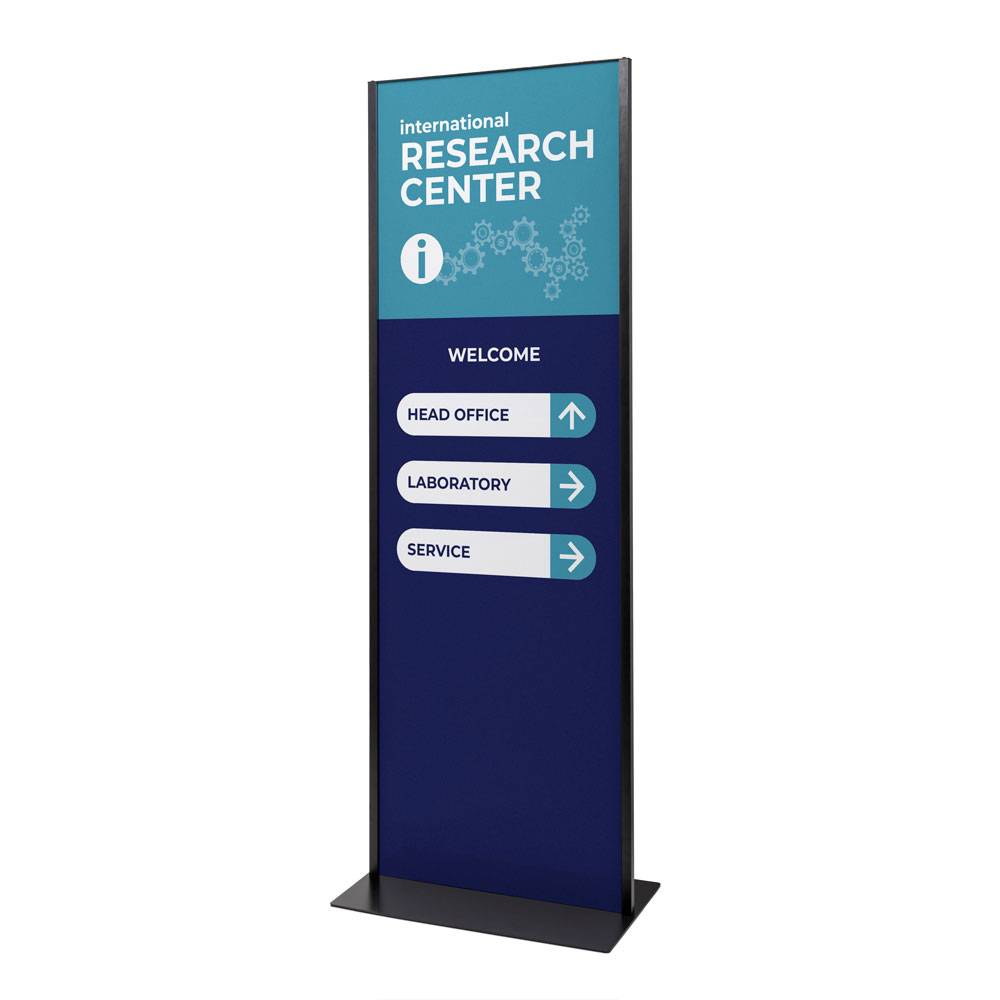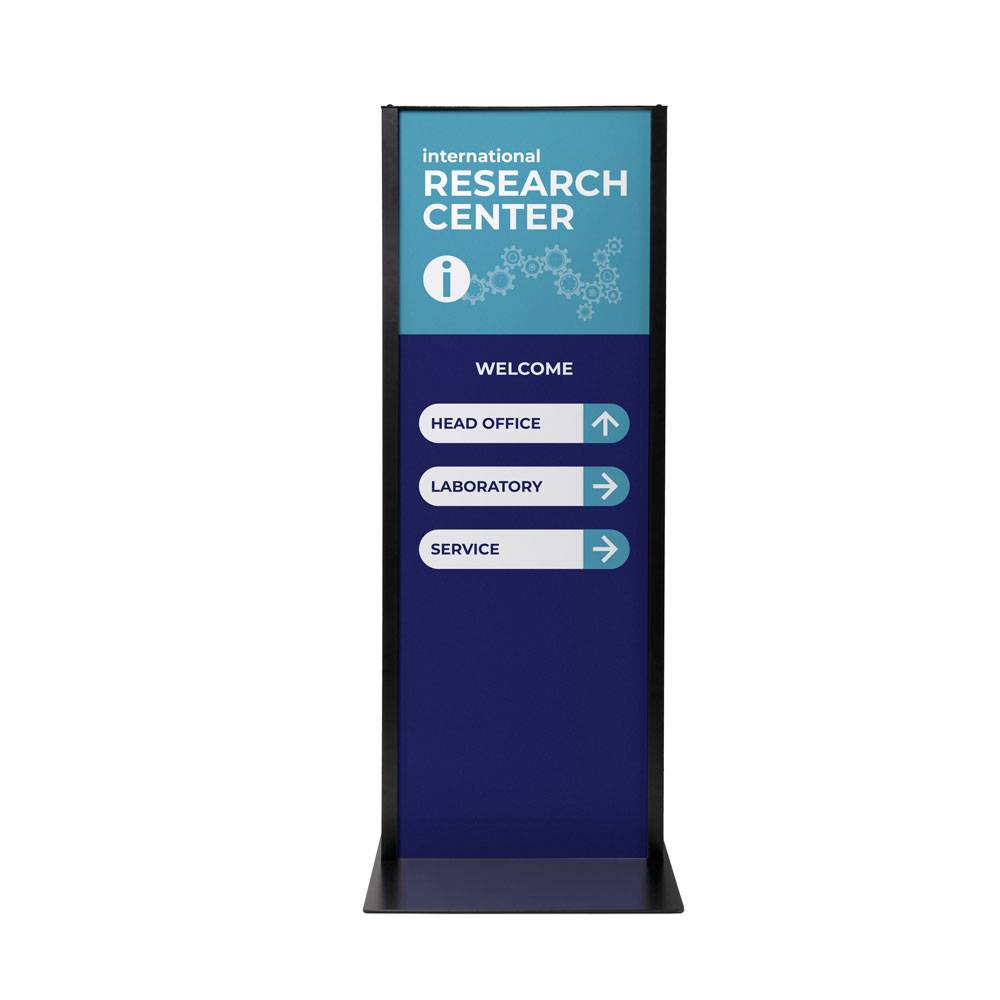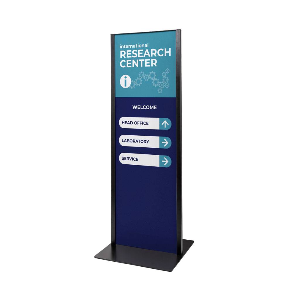 Ligero y disponible en negro o plata, con placas FOREX® de alta calidad que mantienen colores nítidos y duraderos, este tótem es ideal para interiores y exteriores, ferias, eventos y zonas de alto tráfico.